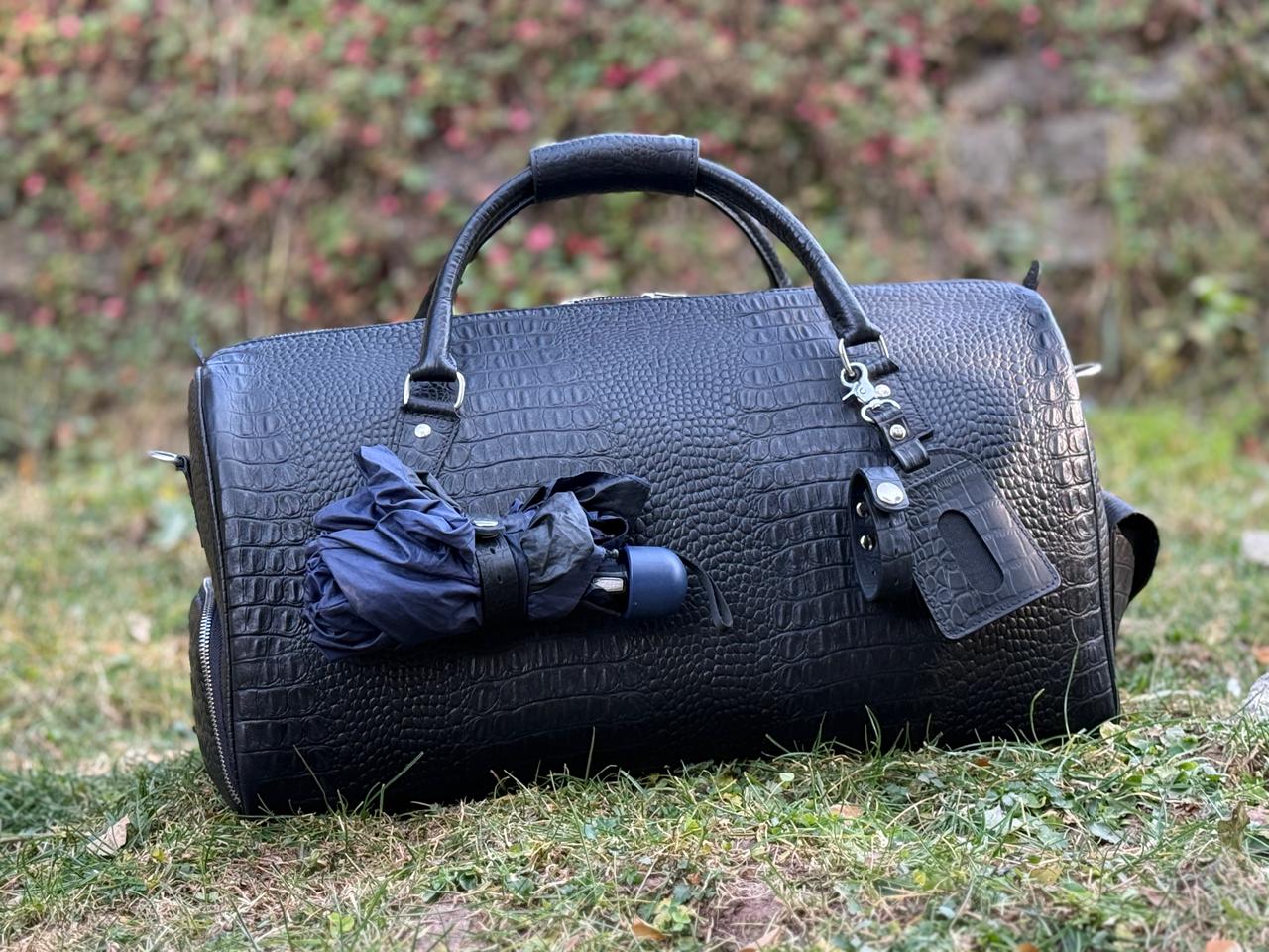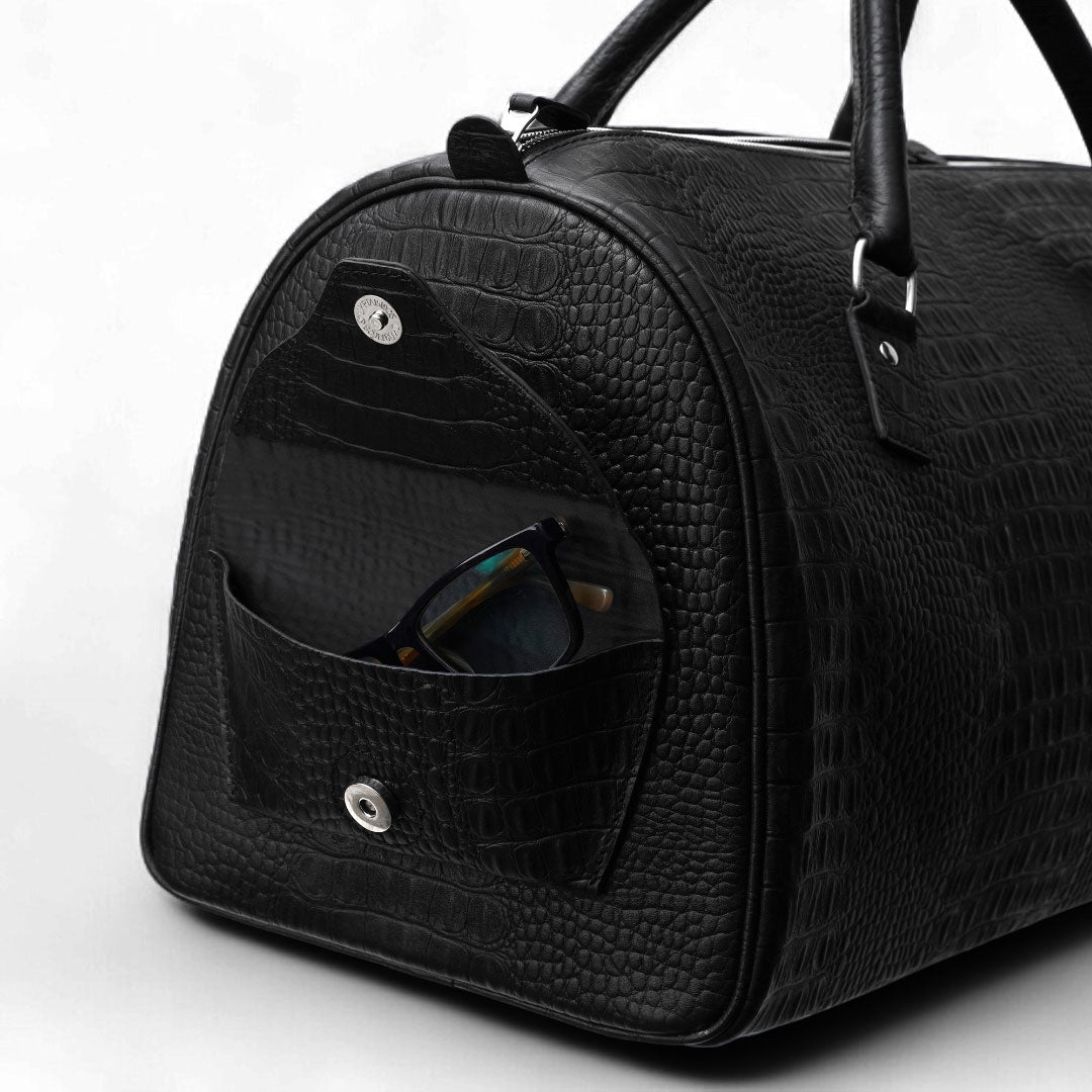 Personalized Leather Duffle Bag Black | crocodile Leather Weekender Bag Men| Monogrammed Gifts For Him| Overnight Travel Bag | Carry-On Holdal